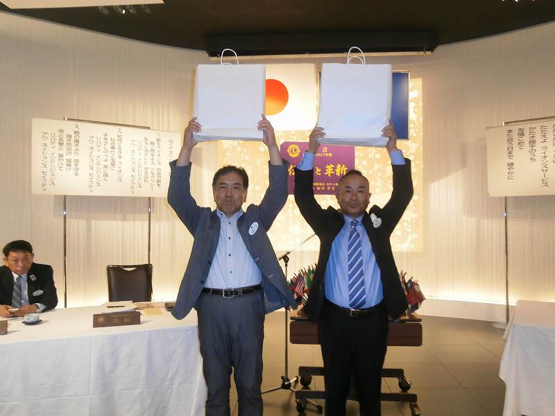 | 第1293回:夜間例会 病気入院中の尾畠会長が無事退院され、2ヶ月振りに例会に出席されました。 前回の年次大会の代議員大会での報告をL堺、L馬場(里)、L安部がされました。 その後の懇親会でも大変盛り上がりました。