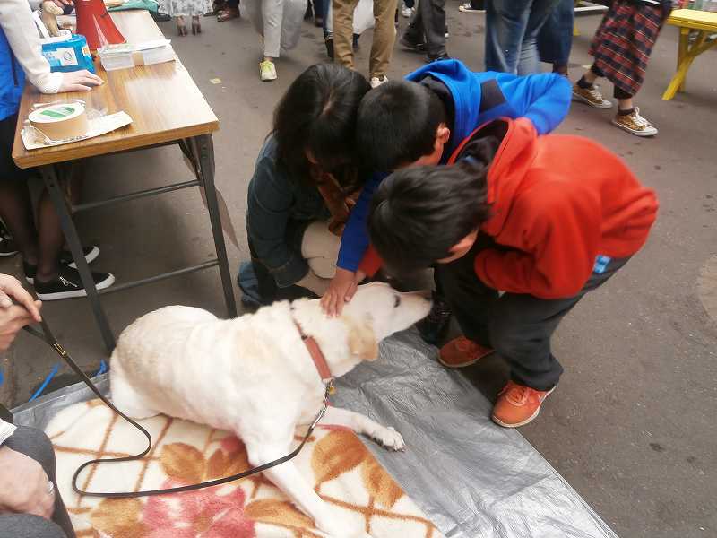 | 盲導犬育成募金活動 今年もさくら祭り会場にて、北九州八幡レオクラブが盲導犬育成募金活動を行いました。 当日は朝から雷雨で霰もふり、急遽商店街の中で祭りが開催されました。