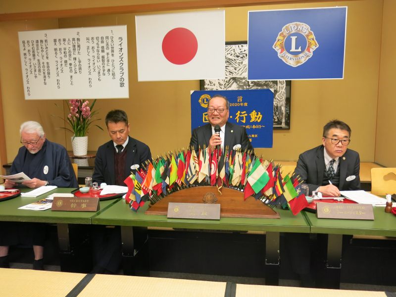 | 第1352回:通常例会 ライオンズクラブは、毎月2回例会が開かれます。 今日は新会員が入会され、帯帽式も行いました。